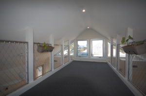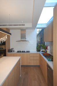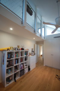 There are a number of pleasant surprises inherent in the design including a large glass skylight, protected from direct sun, over the kitchen positioned in what would otherwise have been the dull south side of the house as well as a shared loft area (with its own view of the city) between the two children’s bedrooms; each having their own “secret” access.