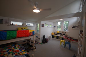 The generous informal living spaces open to a large alfresco area that steps up to a green garden. The children’s bedrooms are combined as one space initially but can easily be divided into two at some time in the future; each with its own access. The main (parent’s) bathroom is generous in proportion and features a luxury bath. An attic home office provides a separate space to retreat to, away from the bustle of the busy family. Overall, a lot of amenity in a compact home.